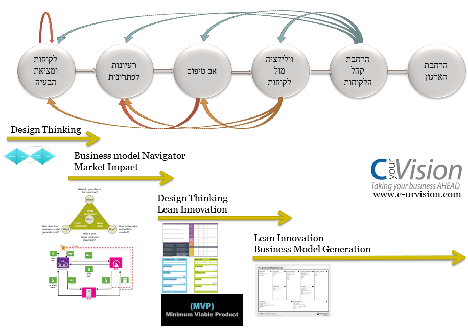 ניתן לראות שהתהליך איננו לינארי ובעיקרו אטרטיבי דבר שמאפיין את תהליך החדשנות בו מחפשים בו זמנית הן את "הבעיה" והן את ה"פיתרון". חשוב להבין שכל התהליך מתבצע אל מול הלקוחות וכל הזמן מקבלים משוב מהם. זאת בניגוד לגישה המסורתית בה פוגשים את הלקוח בהתחלה ובסוף זאת לאחר כמה חודשי פיתוח ארוכים ויקרים ואז מתברר שהלקוח לא מעונין במוצר.